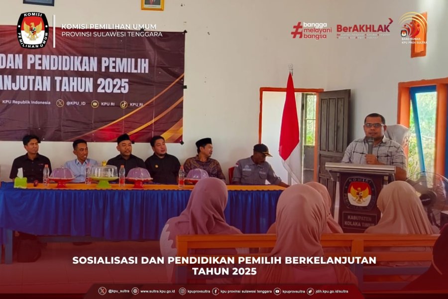 Tirawuta.sultra.go.id_ Anggot KPU Prov. Sultra amiruddin menghadiri kegiatan Sosialisasi Pendidikan Pemilih Berkelanjutan Tahun 2025 bertempat di Aula Kantor Desa Ameroro Kecamatan Tinondo Kabupaten Kolaka Timur (21/9/2025) Kegiatan sosialisasi dibuka oleh Wakil Ketua Komisi II DPR RI bapak Bahtra Banong S.Pwk, kegiatan ini di hadiri Ketua Komisi II DPRD Kolaka Timur, Ketua, Anggoga dan Sekretaris KPU Kab. Kolaka Timur. Sambutan sekaligus membuka pelaksanaan kegiatan Amirudin menyampaikan bahwa pendidikan pemilih berkelanjutan menjadi penting untuk memperbaiki kualitas demokrasi di Indonesia. Tantangan pemilu dan pilkada kedepan masih diperhadapkan pada marak nya isu money politik ujaran kebencian dan penyebaran berita bohong atau hoax Melalui pendikan pemilih ini diharapkan peserta dapat memiliki peningkatan pengetahuan dan literasi kepemiluan yang lebih baik. lanjut amirudddin menegaskan tujuan \kegiatan sosialisasi ini untuk meningkatkan partisipasi pemilu dan memberikan informasi terkait pemilu dan berdemokrasi kedepan. ....