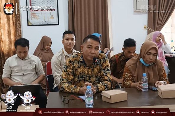 KPU Provinsi Sulawesi Tenggara menggelar Rapat Koordinasi Evaluasi Kegiatan Coklit 10 Hari Kedua dan Persiapan Pemetaan TPS Lokasi Khusus pada Pemilihan Umum Tahun 2024, Sabtu (4/03/2023) bertempat di Aula Husni Kamil Manik, Kegiatan yang dihadiri oleh Plh. Koordinator Divisi Data dan Informasi serta Operator Sidalih KPU Kabupaten/Kota se Sulawesi Tenggara dibuka oleh Plh. Ketua KPU Provinsi Sulawesi Tenggara Bapak Muhammad Nato Alhaq mengatakan bahwa walaupun masih banyak hambatan utamanya dalam hal akses ke E Coklit pada hari ini kita saling berkoordinasi dalam menemukan formulasi terbaik dalam menyelesaikan masalah yang timbul selama 10 hari pertama pelaksanaan E coklit ini utamanaya pada 6 Kabupaten/ Kota dengan persentasi pencapaian terendah. " dengan memaksimalkan kerja kerja pada sistem manajerial, kontrol, monitoring diharapkan masalah teknis kewilayahan dan kependudukan ataupun hambatan geografis dapat kita hadapi sehingga target akan tercapai sesuai dengan jadwal dan data yang diperoleh lebih akuntabel" tambah Nato