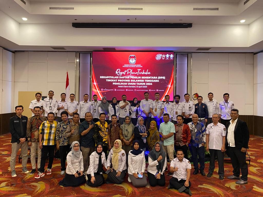 Bertempat di Hotel CLARO Kendari, KPU Provinsi Sulawesi Tenggara melaksanakan Rapat Pleno Terbuka Rekapitulasi Daftar Pemilih Sementara (DPS) tingkat Provinsi Sulawesi Tenggara Pemilihan Umum 2024 Kamis 13/04/2023. membuka kegiatan Ketua KPU Provinsi Sulawesi Tenggara Laode Abdul Natsir mengatakan pesta demokrasi tidak akan berlangsung dengan baik apabila data Pemilih yang digunakan tidak valid, akurat dan komperehensif. " Pekerjaan Data bukanlah hal yang sederhana dikarenakan sifatnya yang dinamis yang setiap saat harus senantiasa dimutakhirkan, apalagi data yang akan digunakan pada Pemilihan Umum 2024 mendatang".