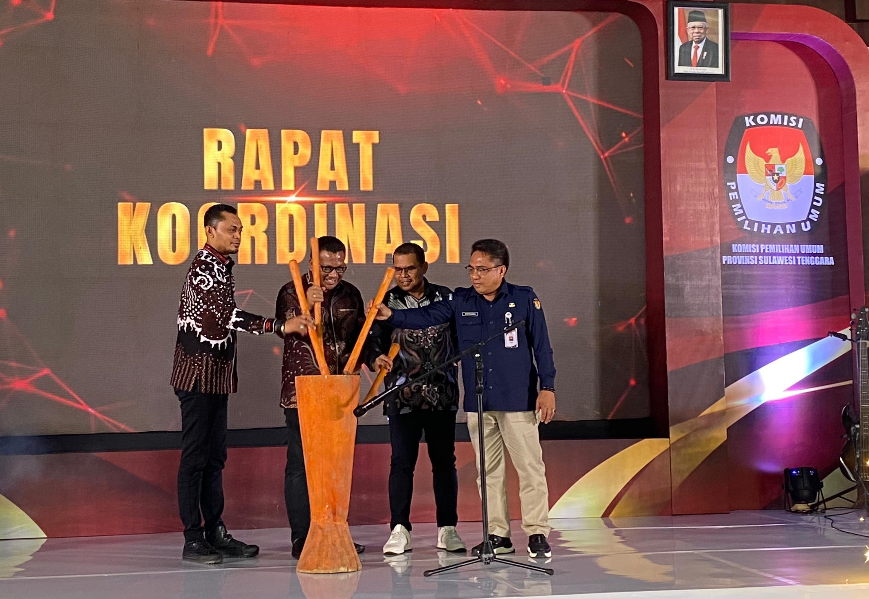Kendatri, kpu.go.id hari kedua kegiatan rapat koordinasi penguatan kapasitas KPU Kabupaten/Kota dan Panitia Pemilihan Kecamatan se sultra dalam penyelenggaraan Pilkada tahun 2024 di hadiri Anggota KPU RI Parsadaan Harahap dalam arahannnya PPK merupakan tulang punggung suksesnya demokrasi independen di Indonesia sekaligus merupakan kekuatan Lembaga, dimana fungsi KPU Provinsi adalah melakukan supervisi, pembinaan, serta melakukan pengelolaan SDM yang ada kepada KPU Kab./Kota untuk membangun komunikasi yang harmonis, efektif dan efisien, serta membangun relasi yang sehat dengan teman-teman PPK jangan menganggap acara penguatan kapasitas ini hanya sebatas seremonial saja semua nilai-nilai yang telah ditanamkan, pemahaman yang diberikan dan penguatan kapasitas yang dilakukan benar-benar bisa kita implementasikan. Lanjut Parsadaan mengingatkan semua penyelenggara terikat dengan pakta integritas bekerja dengan tetap mengedepankan integritas. Asas-asas pemilu harus dipahami dengan baik karena itulah modal dalam melakukan kerja-kerja kelembagaan agar tidak keluar dari peraturan yang telah ditetapkan dan PPK wajib melakukan pelayanan terhadap pemilih dan partai politik serta memberikan pelayanan kepada stakeholder yang ada di daerah sebagai penyelenggara pemilu Dimana PPK harus bisa memetakan siapa yang harus dilayani, dikoordinasikan, dikomunikasikan, stake holder mana yang harus dirangkul. Tanpa itu kita akan berada di ruang hampa, bekerja sendirian melaksanakan Pilkada tanpa di dukung oleh kekuatan-kekuatan yang ada di masyarakat. Para PPK harus percaya diri untuk mensosialisasikan program-program KPU dan mengajak seluruh masyarakat untuk terlibat dalam program-program tersebut.Koordinasikan dengan Bawaslu tentang agenda-agenda/tahapan-tahapan kegiatan KPU. Lakukan pemetaan terhadap potensi-potensi yang mungkin saja bisa menghambat jalannya pelaksanan Pilkada Serentak tahun ini agar kita dapat melakukan pencegahan terhadap hal-hal yang menghambat tersebut sehingga setiap program-program KPU baik di tingkat Provinsi, Kab/Ko maupun Kecamatan dapat diterima dan di support oleh Masyarakat termasuk oleh Bawaslu. Bagi ketua dan Anggota KPU Provinsi maupun Kab/Kota agar membangun koordinasi dan komunikasi yang baik dengan teman-teman Sekretaris Lakukan koordinasi yang efektif dan efisen dengan Kasubag dan PPK. Hal ini penting karena tugas Sekretariat adalah memberikan fasilitasi, dukungan teknis dan administratif. dalam setiap rapat pleno di Provinsi, Kab./Ko maupun Kecamatan, agar selalu melibatkan Sekertaris dan jajarannya agar semua hal yang kita plenokan dapat diketahui dan terbuka bagi Sekretariat KPU. Kegiatan di lanjutkan dengan penyerahan SK Penugasan kepada 12 pegawai P3K Se Sulawesi Tenggara yang diserahkan langsung oleh Anggota KPU RI Parsadaan Harahap serta peresmian pembangunan mess KPU Kabupaten Konawe Selatan yang di tandai dengan penandatangan prasasti.