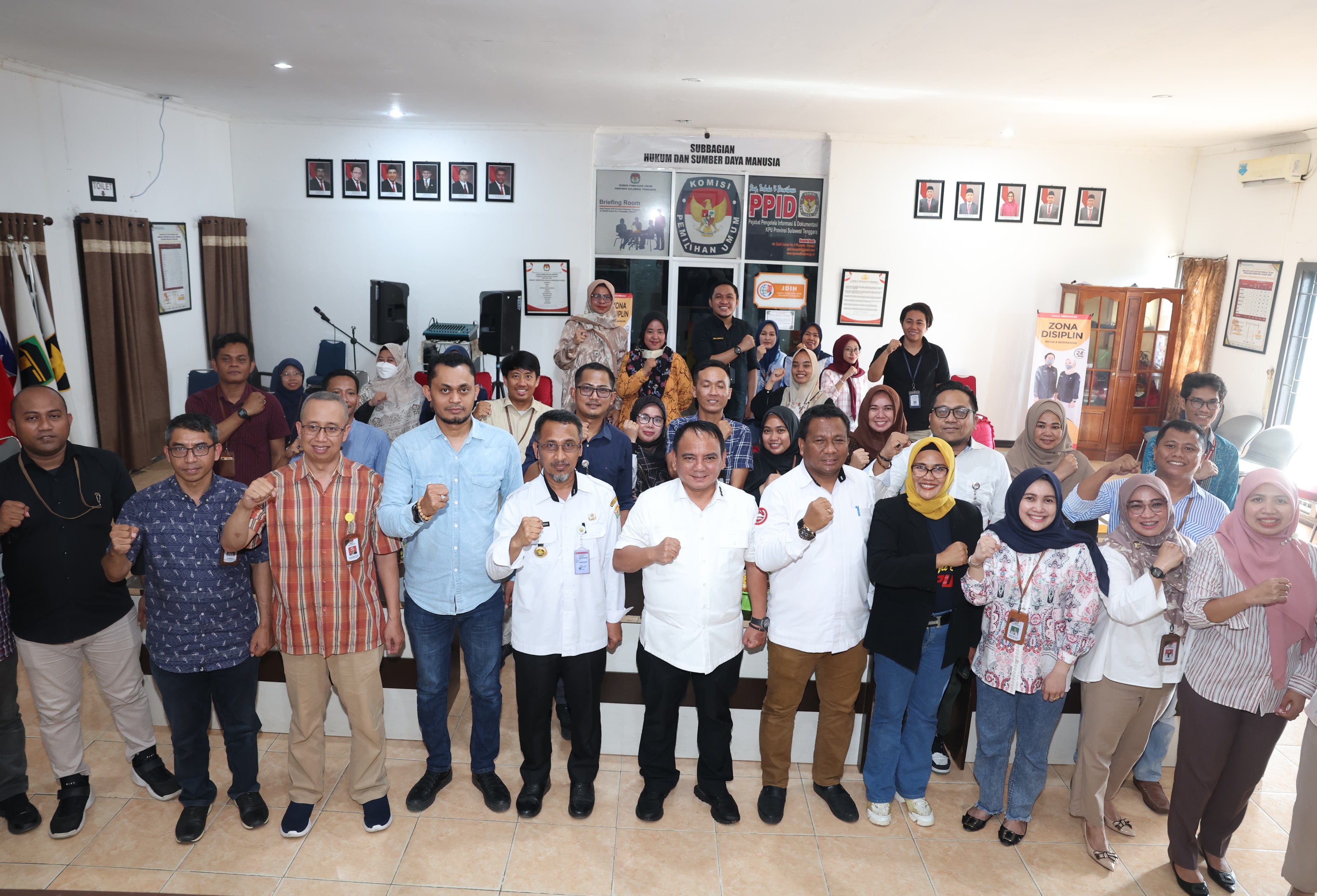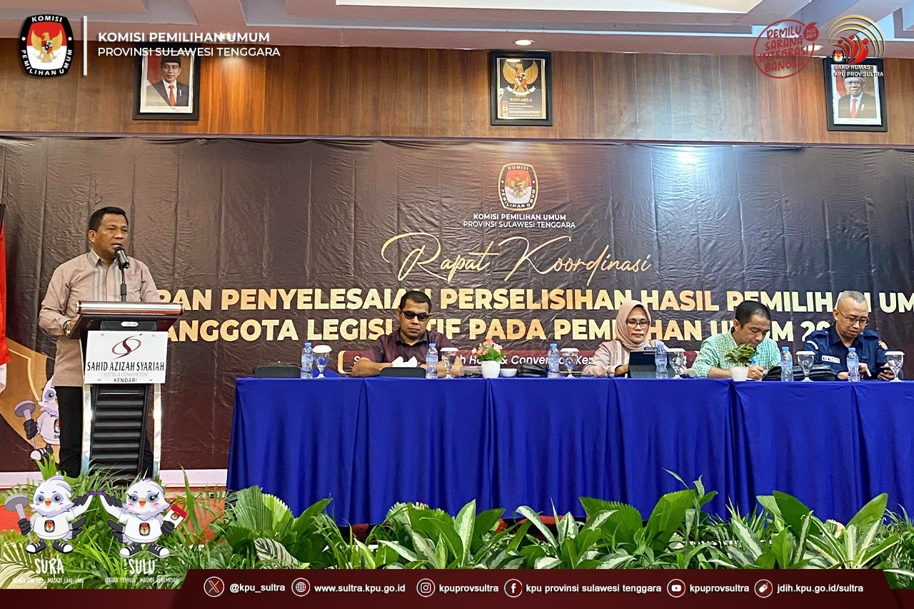Kendari, KPU Provinsi Sulawesi Tenggara menggelar Kegiatan Rapat Koordinasi Persiapan Penyelesaian Perselisihan Hasil Pemilihan Anggota Legislatif pada Pemilihan Umum 2024 di Mahkamah Konstitusi bertempat di Sahid Azizah Syariah Hotel & Convention Kendari (16 April 2024). Kegiatan ini dihadiri oleh Ketua KPU Kabupaten/Kota, Anggota KPU Kabupaten/Kota yang membidangi Divisi Hukum & Pengawasan, Anggota KPU Kabupaten/kota yang membidangi Divisi Teknis Penyelenggaraan Pemilu dan kepala sub bagian hukum & SDM. dalam arahannya Ketua KPU Provinsi Sulawesi Tenggara Asril sekaligus membuka Kegiatan Rapat Koordinasi Persiapan Penyelesaian Perselisihan Hasil Pemilihan Anggota Legislatif pada Pemilihan Umum 2024 di Mahkamah Konstitusi menyampaikan bahwa Dalam menghadapi PHPU diharapkan agar senantiasa siap 24 jam untuk mengkomunikasikan hal-hal yang dibutuhkan serta harap juga berhati hati dalam berkomunikasi dengan pihak-pihak luar menjelang pelaksanaan pilkada. Selanjutnya arahan Kordiv sosialisasi, partisipasi dan hubungan masyarakat dan SDM KPU Provinsi Sulawesi Tenggara Amirudin menyampaikan KPU Kab/Kota agar menyiapkan bukan hanya data, tetapi juga fisik dan mental, Selain itu tetap menjaga kekompakan dalam pelaksanaan tugas dan tanggung jawab. Kordiv Teknis Penyelenggara Pemilu KPU Provinsi Sulawesi Tenggara Hazamuddin menyampaikan Terkait calon perseorangan Pilkada, setiap Satker KPU Kab/Kota segera menyediakan fasilitas helpdesk dan tidak perlu ragu dalam menghadapi proses hukum, karena hal tersebut menjadi wadah pertanggungjawaban atas kerja kerja yang telah dilakukan. Kemudian arahan Sekretaris KPU Provinsi Sulawesi Tenggara Tri Tujiana menyampaikan berkaitan dengan PHPU Legislatif harus diperhatikan untuk lebih mencermati terkait permohonan yang di ajukan, serta menyiapkan alat bukti yang diperlukan, dan intens melakukan konsultasi dan koordinasi jika ada hal-hal yg belum jelas.