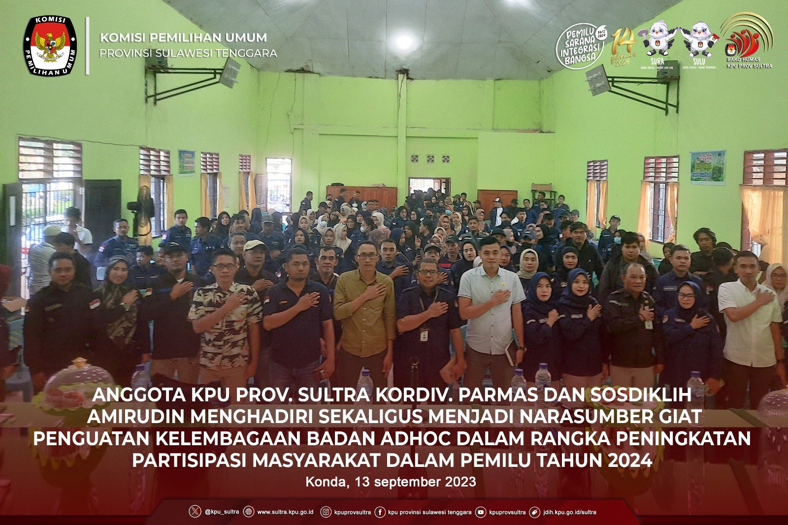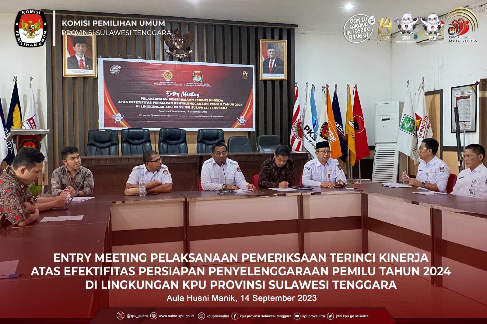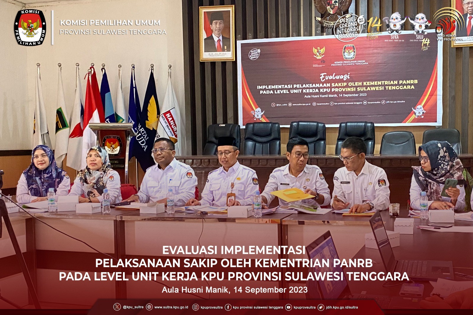 Kementrian PANRB melaksanakan Evaluasi Implementasi Pelaksanaan Sistem Akuntabilitas Kinerja Instansi Pemerintah (SAKIP) Di lingkungan Komisi Pemilihan Umum dengan KPU Provinsi Sulawesi Tenggara sebagai sampling, bertempat di Aula Husni Kamil Manik, Kamis (14/09/2023). Pemaparan disampaikan oleh Sekretaris KPU Provinsi Sulawesi Tenggara Tri Tujiana secara daring (zoom meeting) yang membahas seputar implementasi SAKIP dari KPU RI terkait perjanjian kinerja, indikator kinerja serta target dan capaian kinerjanya. Sedangkan pada bagian KPU Provinsi Sulawesi Tenggara terkait rekomendasi dan tindak lanjut dari evaluasi Inspektorat Tahun 2021 dan 2022. Hadir dalam kegiatan Ketua KPU Provinsi Sulawesi Tenggara, Sekretaris, Kabag Perencanaan Data dan Informasi, para Kasubag dan Staf bagian Rendatin, sedangkan hadir secara daring Tim evaluator dari Kementrian PANRB, Plt Deputi bidang Administrasi, Deputi Bidang Dukungan Teknis, para Kepala Biro dan Kepala Bagian pada KPU RI.