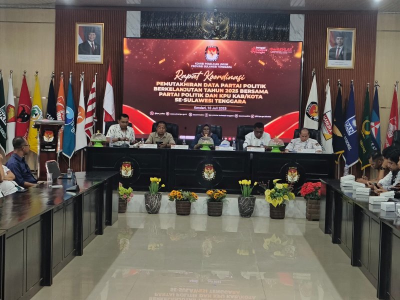 Kendari,sultra.kpu.go.id- Bertempat di Aula Husni Kamil Manik KPU Prov. Sultra gelar Kegiatan Rakor Pemutakhiran data Partai Politik secara berkelanjutan tahun 2025. rakor ini dilaksanakan untuk memutakhirkan data Partai Politik dalam hal Kepengurusan Partai Politik, Keanggotaan Partai Politik, Keterwakilan Perempuan, dan tempat atau lokasi kantor dari Partai Politik di tingkat Provinsi Sulawesi Tenggara.Jumat (10/7/2025). Dalam sambutannya sekaligus membuka kegiatan Ketua KPU Prov. Sultra Nengtias menyampaikan pemutakhiran data parpol sangat penting mengingat dalam kurun waktu 5 tahun data-data terkait Partai Politik tersebut tidak menutup kemungkinan mengalami perubahan dikarenakan dinamika-dinamika tersendiri didalam Partai Politik tersebut. Banyak hal yang mempengaruhi dinamika parpol dalam menciptakan lingkungan yang kompleks dan dinamis di mana partai harus beradaptasi dan berevolusi untuk tetap relevan dalam sistem politik. Tentunya, faktor-faktor ini juga membentuk perubahan yang signifikan dalam kebijakan dan struktur partai itu sendiri”, ungkap Nengtias. Mu’min selaku Ketua Divisi Perencanaan Data dan Informasi menambahkan dimana Dalam arahannya menyampaikan bahwa hubungan antara penyelenggara dalam hal ini KPU dengan peserta tidak berhenti hanya pada saat pelaksanaan Pemilu dan Pemilihan Kepala Daerah, akan tetapi ada hal-hal rutin yang dilakukan dalam bentuk koordinasi yang salah satunya adalah pemutakhiran data partai politik. Disamping itu, adanya beberapa sistem aplikasi yang dimiliki oleh KPU yang berkaitan erat dengan Sistem Partai Politik (SIPOL) yaitu, SIDALIH, SILON, dan SIAKBA. Sehingga pemutakhiran data-data partai politik harus benar-benar terlaksana dengan lebih baik sehingga nantinya data antara sistem aplikasi tersebut dapat terlaksana dengan lebih tertib dan terstruktur”. Kata Mu’min.