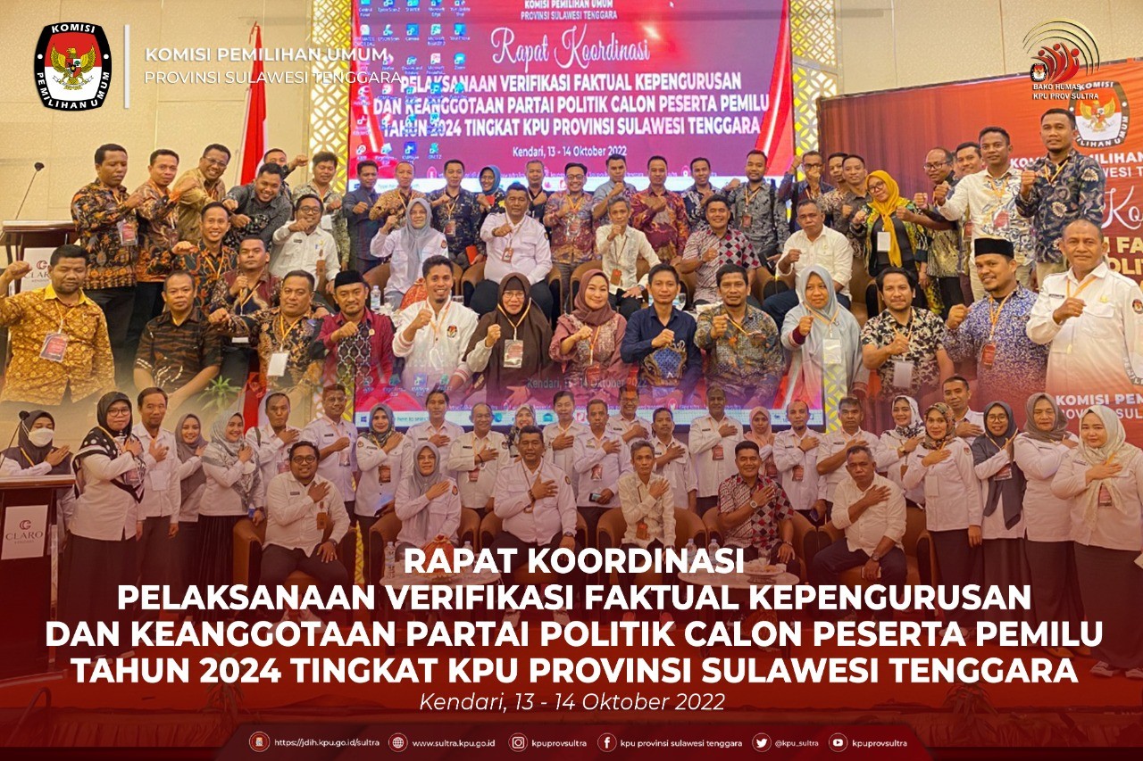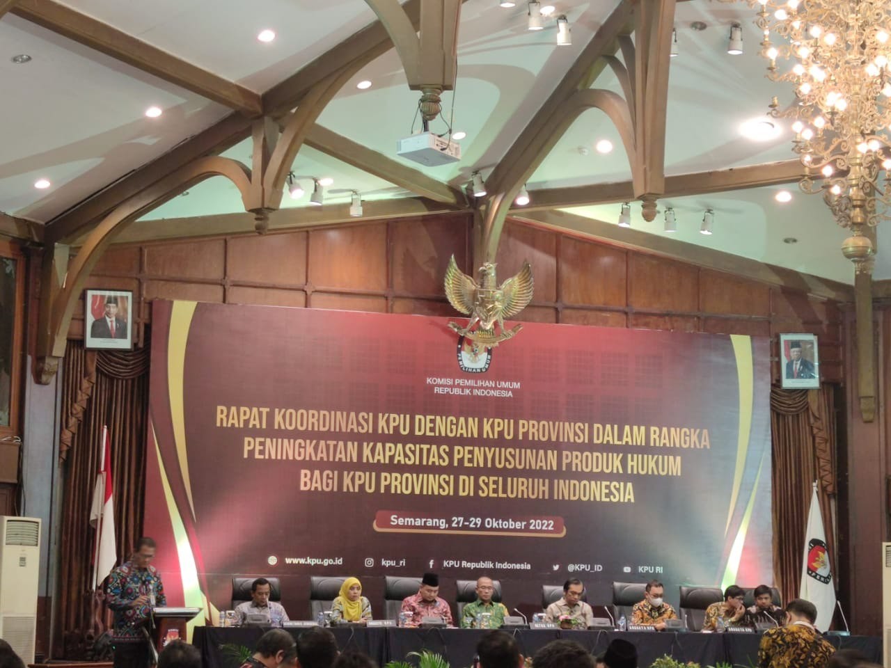 KPU Provinsi Sulawesi Tenggara mengikuti Rapat Koordinasi KPU dengan KPU Provinsi dalam rangka Peningkatan Kapasitas Penyusunan Produk Hukum bagi KPU Provinsi, yang diikuti oleh Ketua KPU Prov. Sultra bapak La Ode Abdul Natsir, Anggota KPU Prov. Sultra Divisi Hukum dan Pengawasan Ade Suerani, Kabag TPPHS Baharuddin, serta Kasubag Hukum dan SDM Taufik Ahmad. Produk Hukum KPU tidak boleh cacat hukum, pesan Ketua KPU RI Hasyim Asy'aridi dalam membuka Rapat Koordinasi KPU dengan KPU Provinsi Dalam Rangka Peningkatan Kapasitas Penyusunan Produk Hukum Bagi KPU Provinsi Di Seluruh Indonesia, yang di gelar di Semarang 27 s/d 29 Oktober 2022. dihadapan 133 peserta rapat Ketua KPU RI Hasyim menekankan bahwa untuk format surata atau dokumen, KPU sudah memiliki standarisasi melalui PKPU Nomor 1 Tahun 2022 Tentang Tata Cara Pembentukan Peraturan dan Keputusan di Lingkungan Komisi Pemilihan Umum, dan PKPU Nomorn 2 tahun 2021 Tentang Tata Naskah Dinas Komisi Pemilihan Umum, Komisi Pemilihan Umum Provinsi, dan Komisi Pemilihan Umum Kabupaten/kota. Hasyim juga mengingatkan kepada KPUProvinsi dan KPU Kabupaten/Kota tidak bisa membuat produk hukum yang melampaui kewenangannya. turut hadir Inspektur Utama, Nanang Priyatna, Deputi Bidang Dukungan Teknis, Eberta kawina, Inspektorat Wilayah I dan III, Pejabata Eselon I dan II, serta jajaran Setjen KPU serat Anggota KPU Provinsi yang membidangi bidang hukum.