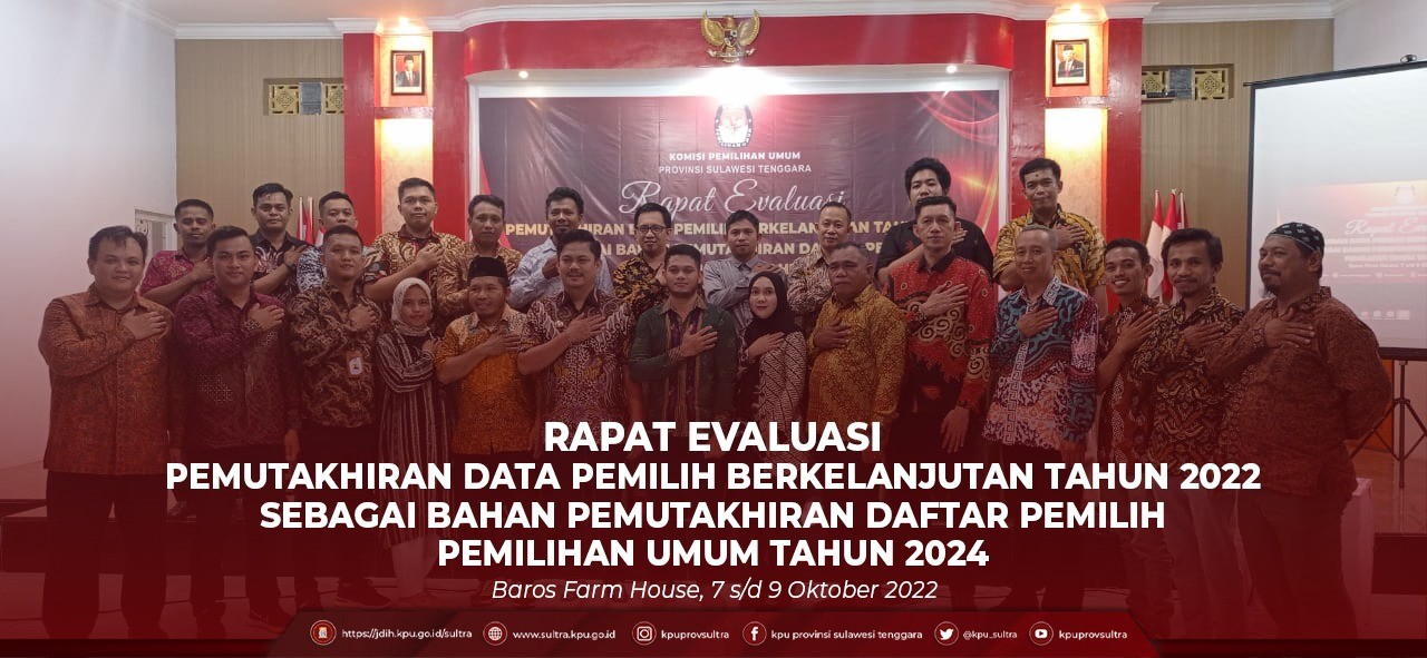 Pemutakhiran Data Pemilih dilaksanakan oleh penyelenggara Pemilu dan pemilihan dimana data tersebut disimpan dan diperbarui secara berkelanjutan dengan memenuhi prinsip komprehensif, inklusif, akurat, mutakhir, terbuka, responsif, partisipatif, akuntabel dan perlindungan pribadi. Dalam proses pelaksanaannya tentu akan mendapatkan masalah yang dapat dijadikan pembelajaran untuk memaksimalkan pelaksanaan tahapan selanjutnya, oleh karena itu pelaksanaan rapat Evaluasi ini diharapkan dapat meningkatkan kualitas data pemilih sebagai bahan pemutakhiran daftar pemilih Pemilu Tahun 2024. Hal tersebut dikemukakan Plh. Ketua KPU Provinsi Sulawesi Tenggara saat membuka Rapat Evaluasi Pemutakhiran Data Pemilih berkelanjutan Tahun 2022 sebagai bahan pemutakhiran daftar pemilih Pemilu Tahun 2024 yang digelar oleh KPU Provinsi Sulawesi Tenggara, Jumat 7/10/2020 bertempat di Baros Farm House Kabupaten Kolaka Timur. Kegiatan yang dilaksanakan selama 2 (dua) hari ini dihadiri oleh Koordinator Divisi Perencanaan Data dan Informasi Muh. Nato Alhaq, Anggota Bawaslu Provinsi Sulawesi Tenggara Divisi penyelesaian sengketa Bahari, Sekretaris KPU Provinsi Sulawesi Tenggara Tri tujiana serta Kabag Perencanaan data dan Informasi, Kasubag perencanaan serta Kasubag data dan informasi. Anggota KPU Muh Nato Alhaq dalam arahannnya mengatakan kegiatan ini merupakan momen bagi kita atas kerja maksimal dalam pemutakhiran data berkelanjutan, KPU Provinsi dan KPU Kabupaten/ Kota saling berkoordinasi, memberikan kontribusi dan support sebagai bagian dari keluarga besar Perencanaan data dan Informasi KPU Provinsi Sulawesi Tenggara dalam menuntaskan data-data sampai batas waktu yang telah ditentukan. tak hanya itu, Nato juga mengingatkan bahwa penting untuk tidak melakukan rekapitulasi tanpa pemahaman regulasi akan jauh lebih baik sepanjang bisa dikoreksi ,”dengan patuh pada aturan dan narasi yang sesuai dengan kenyataan akan menghasilkan output yang berkualitas”kata Nato. Turut hadir Plt. Bupati Kabupaten Kolaka Timur Abdul Azis, Kepala Kebangpol Kabupaten Kolaka Timur Subhan, Ketua dan Anggota KPU Kabupaten Kolaka Timur serta Sekretaris KPU Kabupaten Kolaka Timur. Pada hari kedua kegiatan dikemas dalam bentuk diskusi kelompok dengan mengemukakan permasalahan tentang Regulasi dan anggaran ,