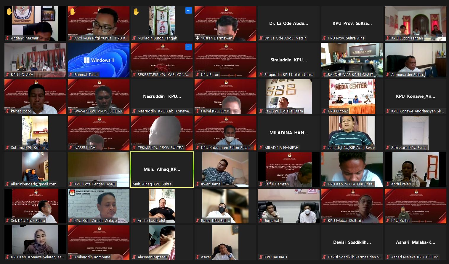 Kendari, 18-11-2021. KPU Provinsi Sulawesi Tenggara meyelenggarakan kegiatan Bimbingan Teknis Peningkatan Kapasitas SDM Bidang Kehumasan KPU Provinsi Sulawesi Tenggara dan KPU Kabupaten/Kota se Sulawesi Tenggara. Kegiatan dibuka oleh Ketua KPU Provinsi Sulawesi Tenggara Dr. La Ode Abdul Natsir, SE., M.Si, dalam pidatonya beliau mengatakan bahwa berdasarkan UU No. 4 Tahun 2008 tentang keterbukaan Informasi Publik, maka KPU sebagai lembaga dengan jaringan kerja yang besar harus dapat memaksimalkan kinerja kehumasan kepada publik. karena sekarang ini semakin maraknya politik identitas, hoax kampaye dan sara dari waktu kewaktu dapat menurunkan image KPU. Akan tetapi dengan kehumasan KPU diharapkan mampu mengimbangi banyaknya aksi untuk menurunkan elektabilitas KPU dan dapat mengimbangi informasi-informasi yang bersifat hoax. beliau juga mengharapkan agar semua Satker yang ada di Provinsi Sulawesi Tenggara memiliki pemahaman dan pengalaman yang tinggi dalam memberikan informasi pemilu dan kepemiluan kepada publik. Selain itu, diharapkan KPU Kabupaten/Kota juga dapat memberikan informasi dan kreatifitas dalam hal kehumasan tanpa meninggalkan citra KPU yang sesungguhnya. Dalam kesempatan ini Al Munardin Anggota KPU Provinsi Sulawesi Tenggara selaku Koordinator Divisi Parmas juga mengatakan bahwa aspek SDM KPU diharapkan mampu beradaptasi dengan semakin canggihnya teknologi masa kini. Kegiatan ini dilakukan secara offline, Daring dan Live Youtube bersama KPU Kabupaten/Kota se Sulawesi Tenggara dengan mengundang salah satu konten kreator profesional Yusran Darmawan.
