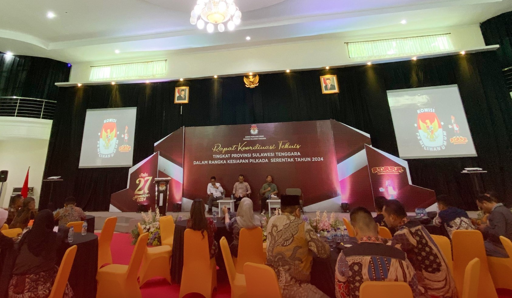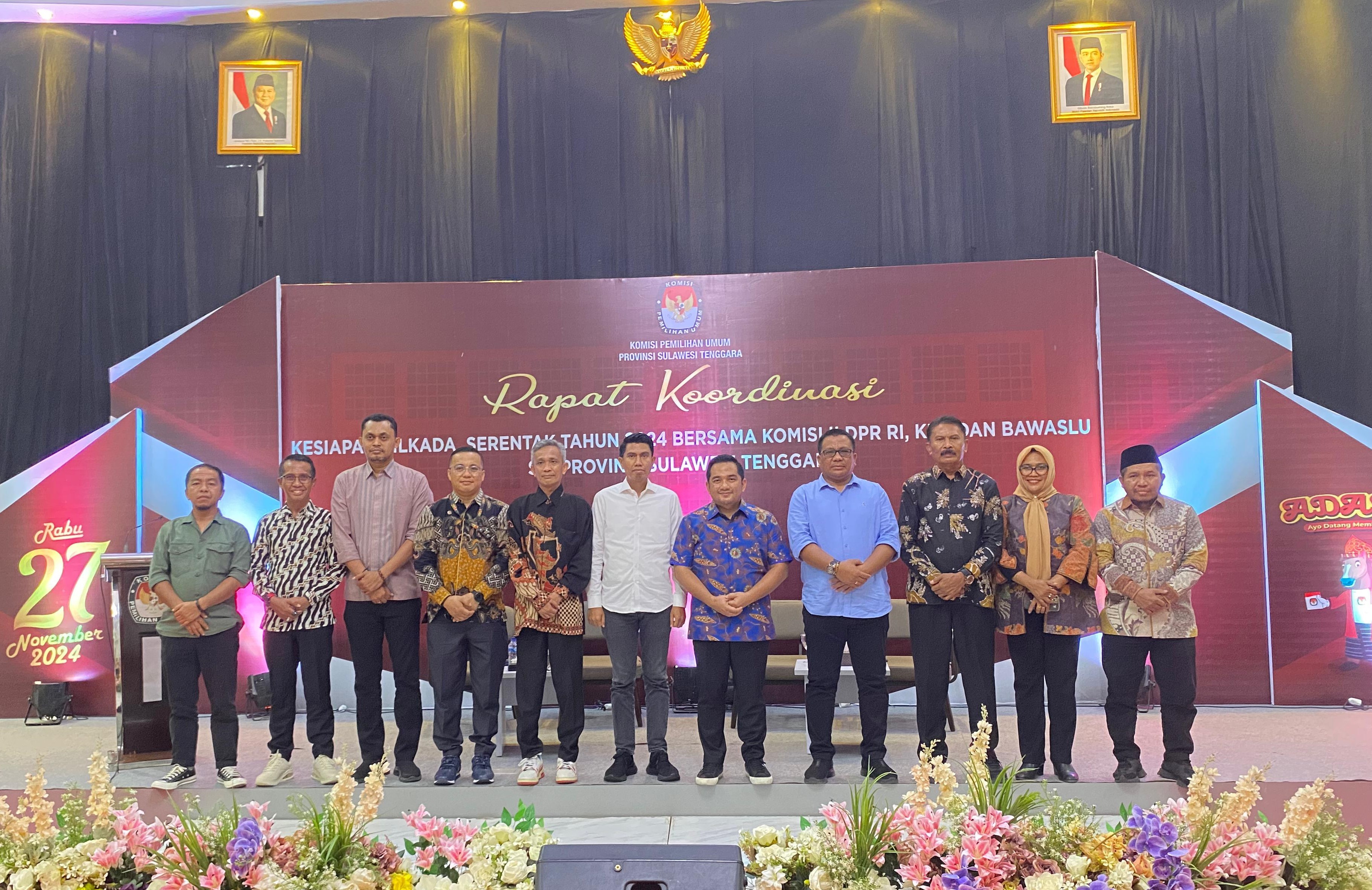 Baubau, sultra.kpu.go.id Komisi Pemilihan Umum Provinsi Sulawesi Tenggara (KPU Sultra) Bersama Komisi II DPR RI dan Bawaslu Sultra melaksanakan Rapat Koordinasi Kesiapan Pilkada Sultra Tahun 2024, bertempat di Aula kantor Walikota Baubau, kamis (21/11/2024). Sambutan selamat datang Pj. walikota Baubau yang di wakili oleh Asisten 3 Laode Darusalam menyampaikan tak terasa kurang lebih 6 hari lagi kita akan melaksanakan pilkada serentak harapannya kegiatan yang dilaksanakan pasa malam ini dapat berjalan dengan aman tertib dan terkendali, dalam kesempatan ini mewakili Pj Walikota Baubau menyampaikan selamat datang kepada Bapak Ketua Komisi II DPR RI dan Wakil Ketua Komisi II DPR RI Juga Ketua dan Anggota KPU Prov. Sultra, Ketua dan Anggota Bawaslu Prov. Sultra serta para peserta Rapat koordinasi besar harapan bapak dan ibu selama di kota baubau senantiasa dalam lindungan allah sampai kembali di tempat masing-masing. Ketua KPU Sultra Asril, dalam arahannya menyampaikan bahwa untuk semua tahapan kedivisian sudah dilaksanakan dimana logistik sudah 100%, Adapun kekurangan surat suara juga sudah di tindaklanjuti. Dan untuk sekarang kami masih dalam tahapan kampanye dimana dalam PKPU akan berakhir pada tanggal 23 november, dan kami juga sudah melakukan rapat koordinasi dengan bawaslu sultra beserta satol PP dan Kesbnangpol untuk penertiban alat peraga kampanye. Kami sudah menyampaikan kepada badan Adhoc di Tingkat PPK dan PPS untuk melakukan pembersihan alat peraga kampanye di masing-masing wilayahnya. Arahan Wakil Ketua Komisi II DPR RI Bahtra, menyampaikan kenapa kami laksanakan rapat menjelang pilkada serentak ini atas himbauan Presiden RI agar pilkada serentak harus berjalan maksimal lancar dan damai. Saya mengingatkan kepada teman-teman penyelenggara ini pertama kalinya kita menggelar pilkada serentak bersamaan tolong jangan di anggap enteng. Semoga pilkada yang akan kita gelar ini bukan hanya sekedar pergantian pemimpin tapi menciptakan pilkada yang berkualitas untuk menentulkan pemimpin yang bagus, kuaitas demokrasi yang makin meningkat, dalam kesempatan ini saya menyampaikan mari kita Bersama untuk menjaga pilkada ini dengan integritas juga netralitas. Ketua Komis II DPR RI Rifqizamy, menegaskan dimana pilkada tahun 2024 ini adalah pilkada pertama kali yang dilaksanakan secara serentak yang setelahnya akan kita lakukan evaluasi secara holistik bukan hanya terkait sistem, pelaksanannya juga mekanismenya tetapi bagi DPR RI yang paling penting sejauh mana ketentuan peraturan perundang-undangan terutama undang-undang terkait pemilihan gubernur bupati dan walikota dapat melahirkan demokrasi lokal yang baik.
