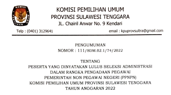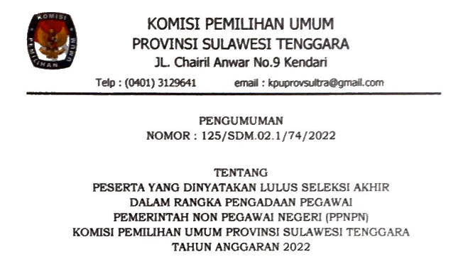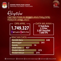 Kendari, 10 Mei 2022, KPU Provinsi Sulawesi Tenggara melaksanakan Rapat Pleno Rekapitulasi Pemutakhiran Data Pemilih Berkelanjutan Periode April Tahun 2022 dimana jumlah Pemilih Sebanyak 1.749.327 pemilih dengan rincian pemilih laki-laki berjumlah 871.613 dan pemilih perempuan berjumlah 877.714, jumlah pemilih baru 1.021, jumlah pemilih tidak memenuhi syarat 592 dan jumlah pemilih ubah data 437.