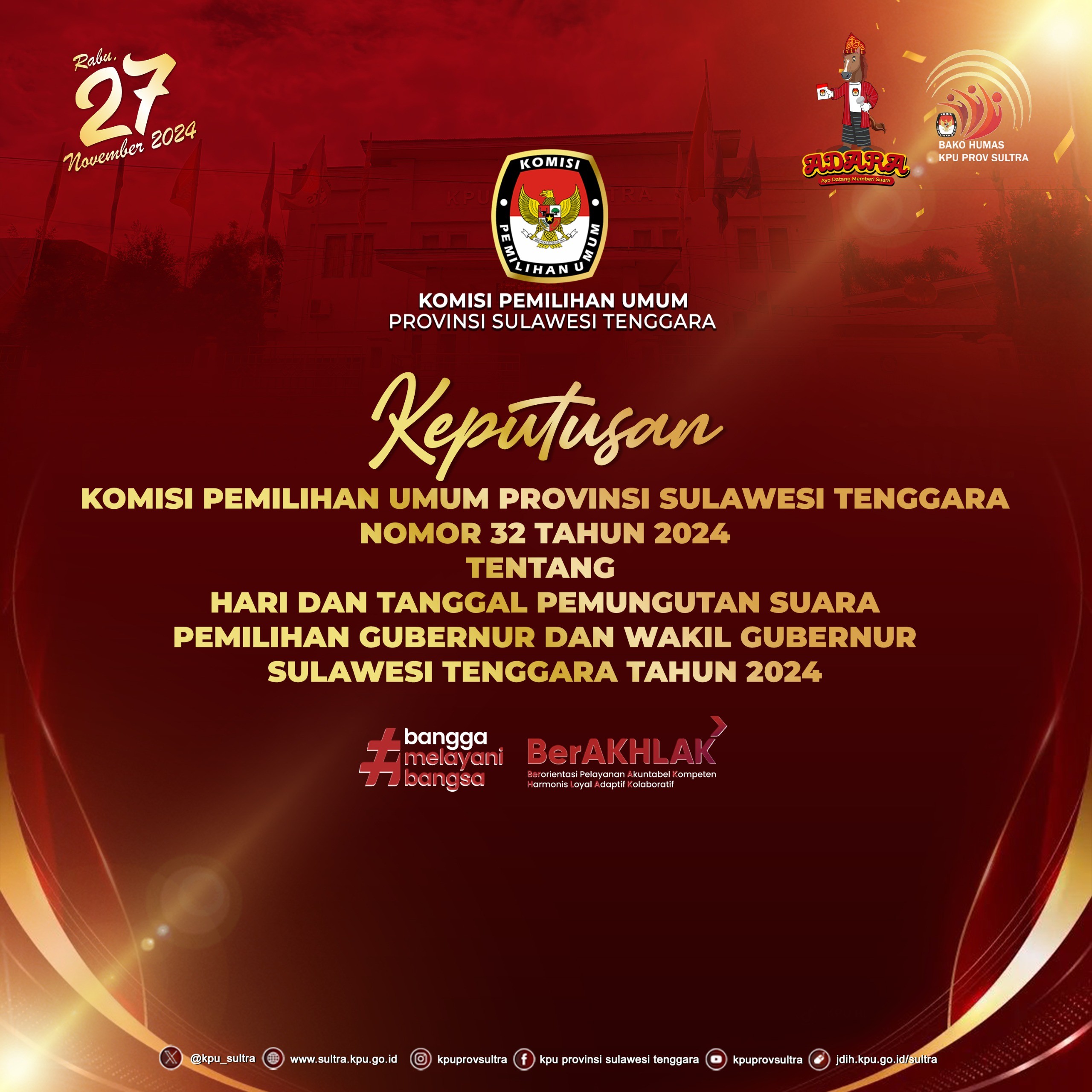 berdasarkan pertimbangan tersebut Komisi Pemilihan Umum Provinsi Sulawesi Tenggara perlu menetapkan Keputusan tentang Hari dan Tanggal Pemungutan Suara Pemilihan Gubernur dan Wakil Gubernur Sulawesi Tengara tahun 2024.